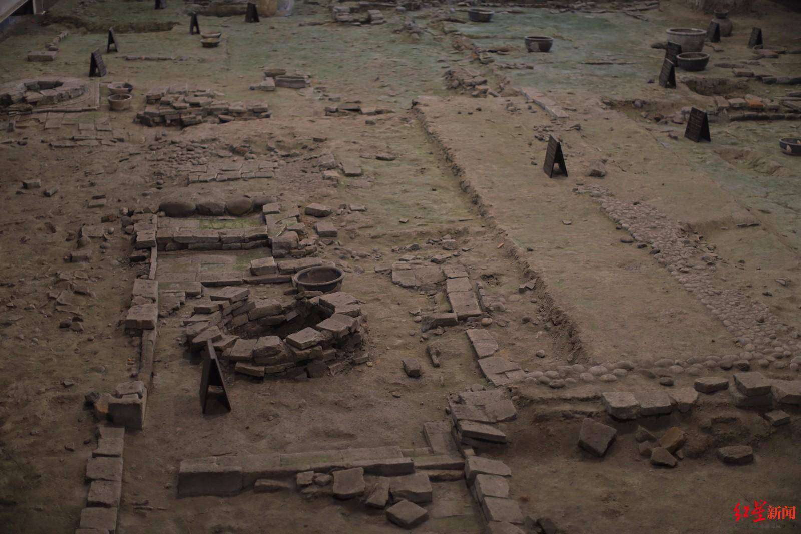 在唐代遗址没有发现之前,杜甫草堂有个最大的缺憾,便是从文献到文献,没有具体的实物。走近唐代遗址,其中有十多个埋藏了一半在地下的大大小小的陶罐,周维扬指着它们说,“这可能是唐代的冰箱,因为有一半埋藏地下,能让里面储存的食物在温度较低的环境下保存,不易生霉。”说完他又指着远处的一口井,表示唐碑就出土在那儿。