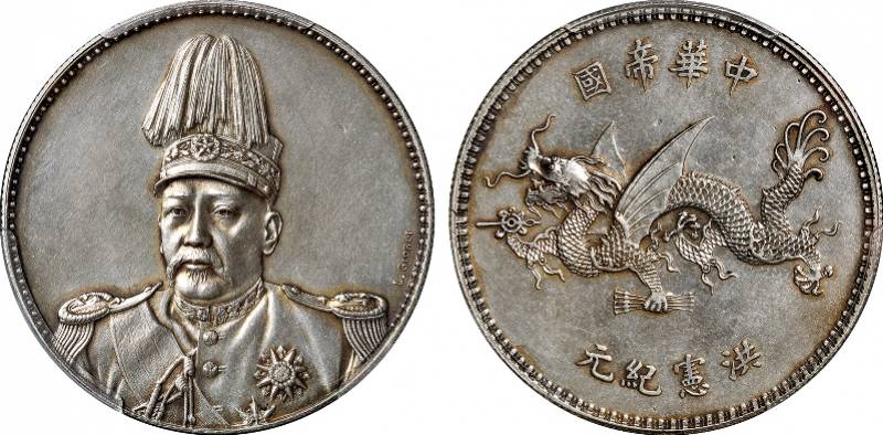 1916年袁世凯像中华帝国洪宪纪元飞龙纪念“L.GIORGI”签字版银币样币