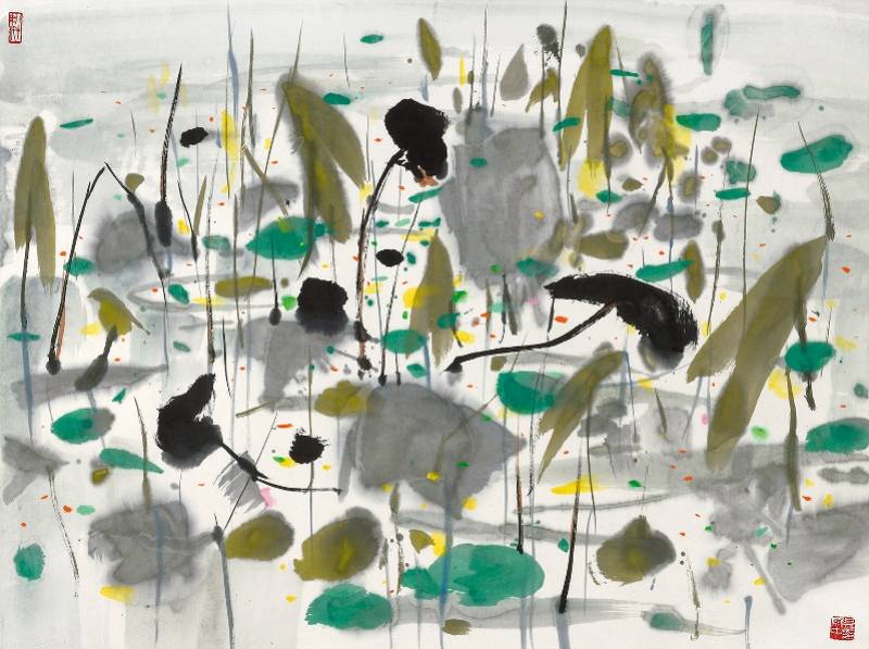 吴冠中 秋塘荷影 镜心 设色纸本 68x90.5cm. 约5.5平尺