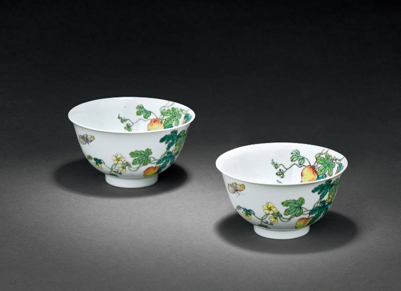 清乾隆 粉彩过枝癞瓜图碗一对 11.1cm.(2) Diam