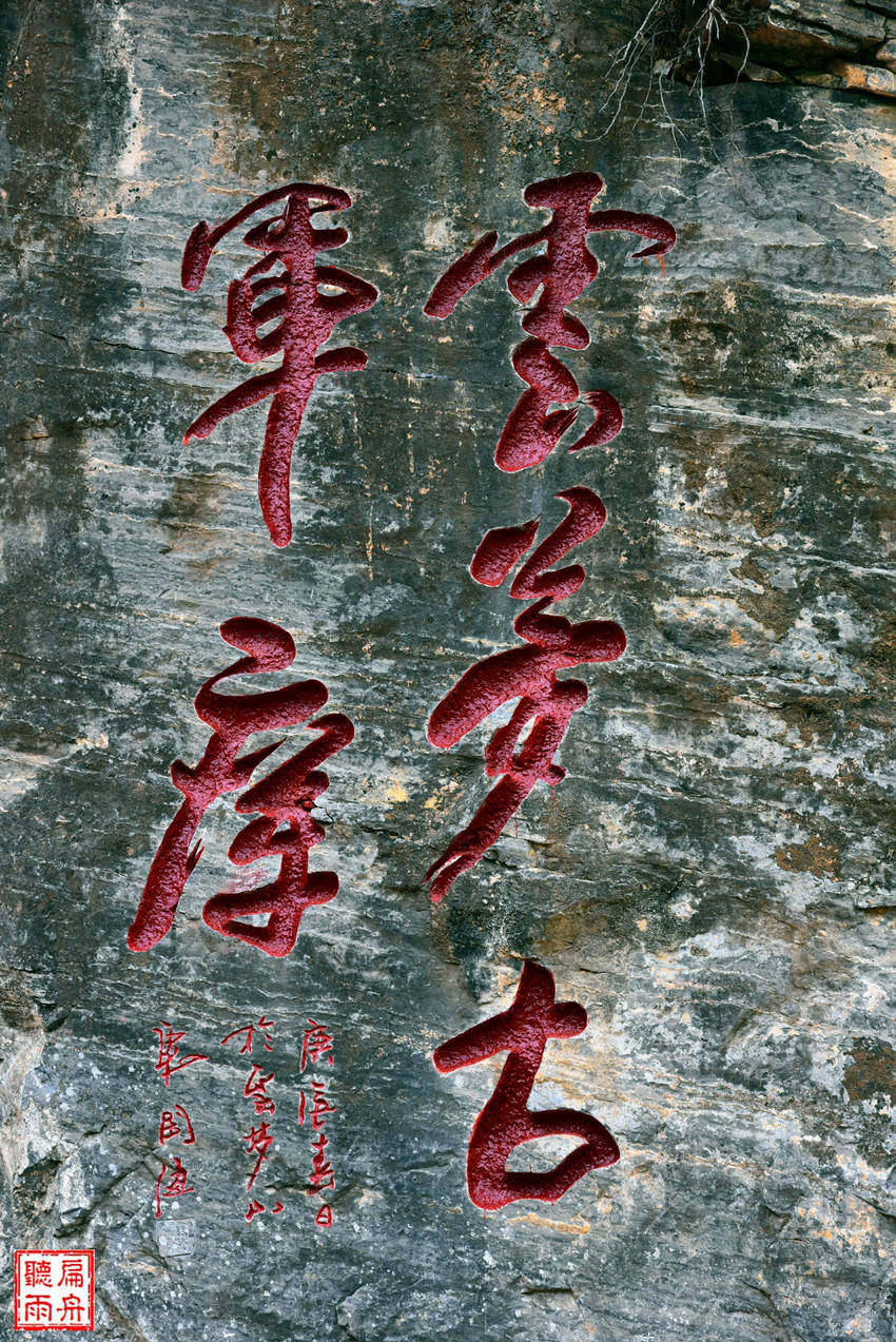 山门上,“云梦山”三个金色的大字和门楣上的“中华古军校”五个红漆大字,是穆青先生所题,张爱萍将军所题的“战国军校”碑,则赫然竖立于古军庠的遗址上。