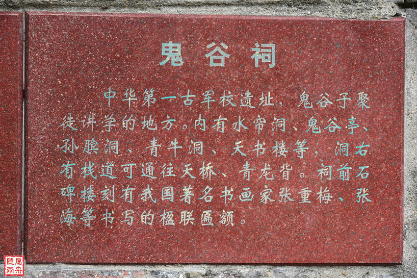 历时两千多年,古军庠早已灰飞烟灭,后人便在古军痒的遗址上建起了鬼谷祠,以示对历史的尊重和缅怀。在这里,你尽可以恶补自己不知道的历史知识。