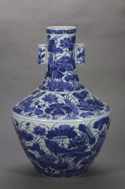 此尊满绘荷花纹,荷叶翻卷自然,立体感强,比例关系合理,透视严谨,深受西洋画风影响,属乾隆御窑瓷器精品。