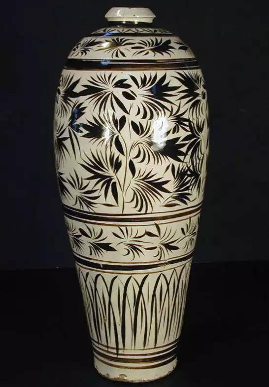 图丨磁州窑白釉黑彩唐草纹梅瓶 北宋