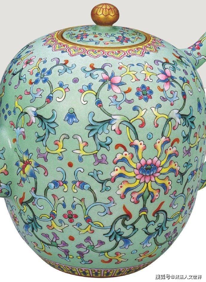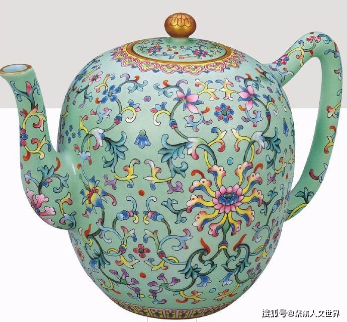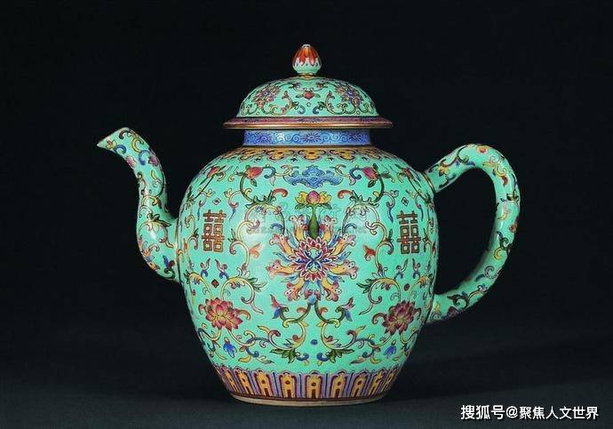 一只《青地粉彩勾莲纹茶壶》,如今被北京故宫博物馆收藏着。典型的乾隆爷把玩器,一般的老百姓没有机会玩,都是富贵人家的东西。