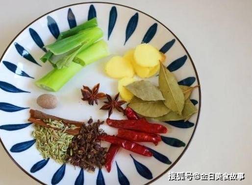 3.还准备一些香料,洋葱,姜,八角形,一小块肉桂,几片香味,肉,胡椒和小茴香。