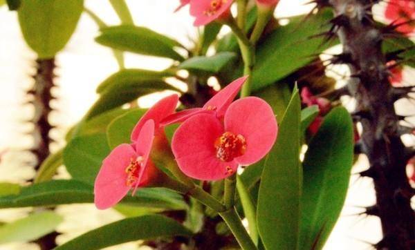 而且地栽的虎刺梅花朵很大,花色鲜红,看起来特别喜庆。听主人讲,她的那棵虎刺梅一直没有施过肥,买回来的小苗随便一种,再没管过,四季都能开花,冬天花色甚至比现在还要鲜艳一点。好吧,我又被种草了,什么时候去花市,看来要买一棵虎刺梅才行。