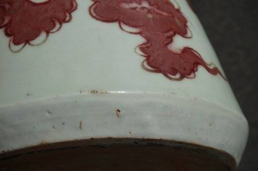 釉里红创烧于元代,盛行于明代洪武朝。因为皇帝姓朱,且成业于“红巾军”,所以特别喜欢红色。但是釉里红的成品率远远比青花低。因为铜离子对温度极为敏感,在窑炉中温度不到,呈现黑红或灰红;火候稍过铜离子便挥发,出现飞红现象或干脆退色。到永乐宣德以后,几乎绝迹。直到清康熙才将这一工艺恢复。