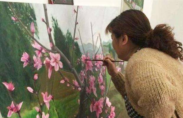 她最喜欢画的就是桃花,在她不成熟的绘画技艺下,一朵朵娇艳欲滴的桃花不仅栩栩如生,而且还可以媲美国宝级艺术家周春芽的作品。