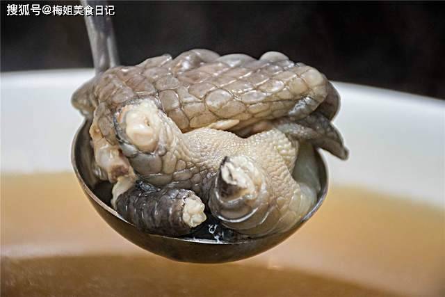 鳄鱼这种凶残的动物居然也敢用来煲汤,相信光看卖相,很多小伙伴就已经没有胃口了。鳄鱼有化痰止咳、消炎解毒感冒的功效,搭配一些排骨同炖,可以滋补养生。这道鳄鱼汤口感醇厚、味道非常鲜美,只需要在出锅前,加入适量的盐调味即可。