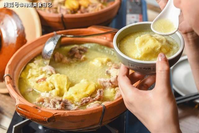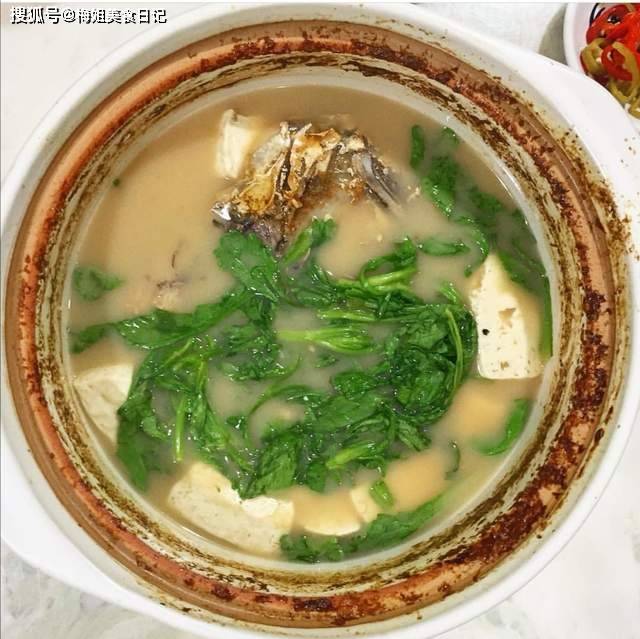 这道汤的食材包括豆腐、白菜、咸鱼头,颜色奶白,味道咸鲜,尤其是鱼头营养价值非常丰富。