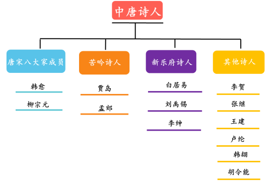 盛唐之后就是中唐,具体时间为766年到835年,一共69年。这个时期国家慢慢稳定,是唐诗的过度阶段,因为经历过安史之乱,整体诗风有点感伤,但也不乏活力,不仅会学习前人,还会想着超越他们。
