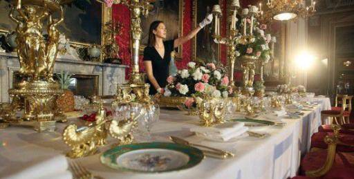 印度招待外宾的国宴,一般都在总统府的宴会厅举行,来宾一般有100多人,除宴会厅之外,也可以在总统府后院的莫卧儿花园搭建巨大的帐篷作为室外国宴场地。国宴上供应的都是印度风味的菜肴。印度人吃素也是出了名的,即使在大城市想找一个能吃肉的地方也不容易,所以人家的国宴也是清一色素食。