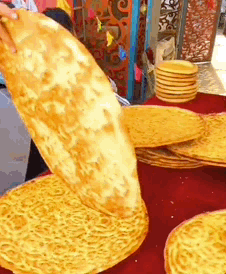 有个从那旅游回来的朋友说,要是把库车市所有的馕排在一起,天空都会被它们遮蔽,他曾成功把一个馕顶在头上当遮阳伞用。