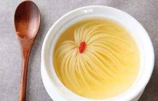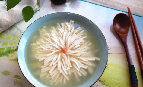 第二道菜:菊花嫩豆腐。和上一道菜类似的一点是,鱼肉是常见荤菜中最细嫩的肉品,而豆腐则是素菜中最细嫩的菜品。所以一道好的豆腐菜,一定要保证它的核心优势被发扬,菊花嫰豆腐就是这样一道菜。他需要厨师将一块豆腐用菜刀,切成数百个细丝小条,当豆腐放入清水中就会呈现出菊花绽放一般的形态。咱们平时要是切割土豆丝都要费很大劲,豆腐基本就是大块大块的处理,所以这也就是职业和非职业的区别了。
