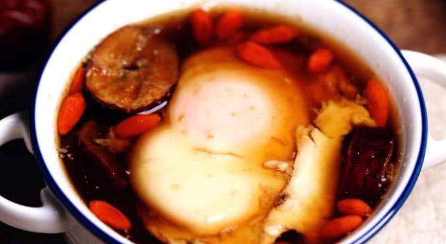 食材:鸡蛋、红糖、红枣、米酒、枸杞。