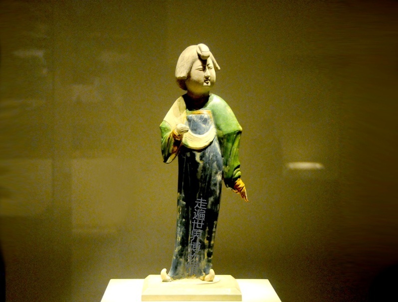 :在汉代黄釉、绿釉的基础上,唐代创烧出了多彩釉陶器,俗称“唐三彩”。其“三彩”的颜色主要有