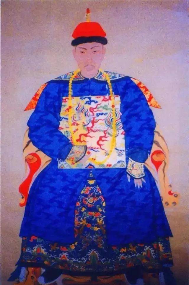 这张图像上的太子已经中年,穿着朝服佩戴上蜜蜡朝珠贵气逼人!