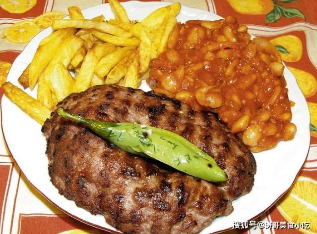 塞尔维亚人爱吃肉,尤其是各种烤肉。以猪肉、牛肉、羊肉糜混合制成的Pljeskavica可以说是塞尔维亚的国菜。这道菜看上去介于土耳其的碎肉烤肉和德国的汉堡肉饼之间,吃的时候一般配上洋葱、奶油酱、薯条和各种小菜。类似的烤肉在波黑、克罗地亚、黑山、北马其顿等地非常流行。