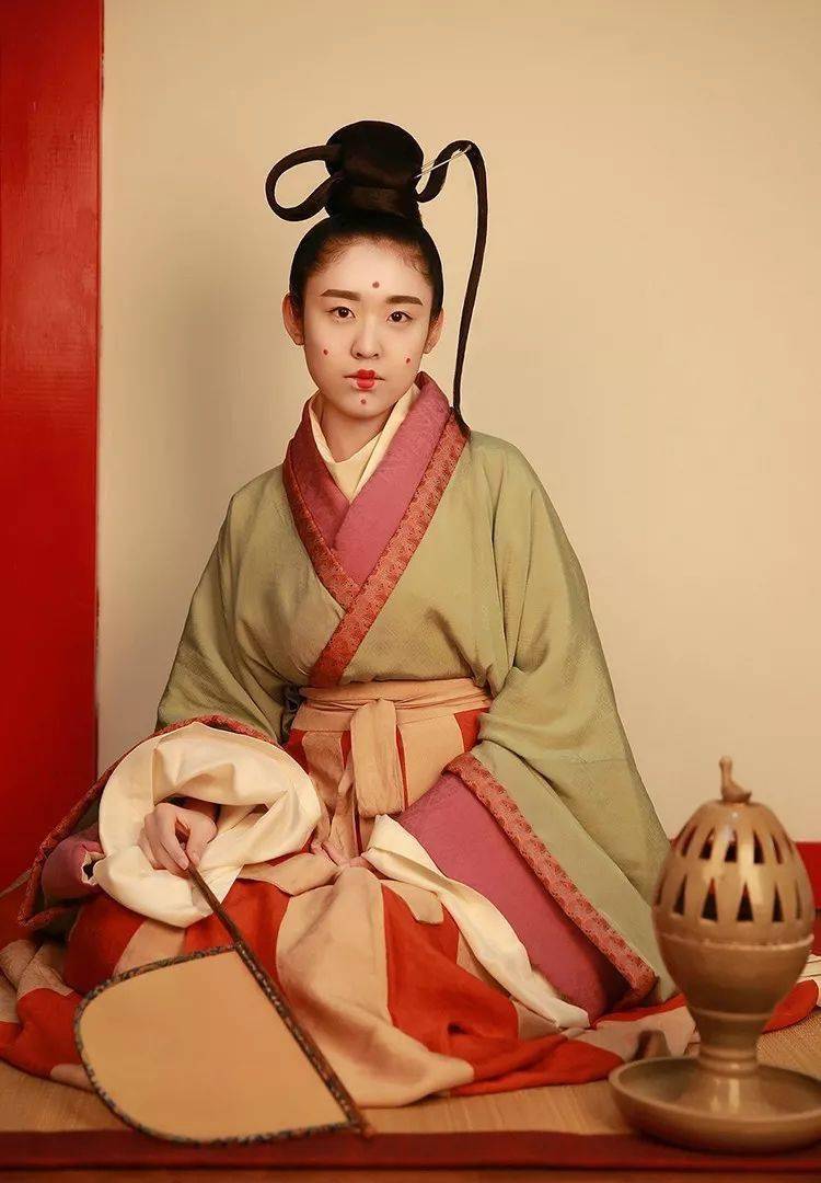 凡是有官爵的人,无分男女,还得把一条丈多长的丝绦(按品级颜色各不相同),折叠起来挂在右腰边,名叫“组绶”。贵族男子这时已改佩环刀。普通男子头戴巾、帻。