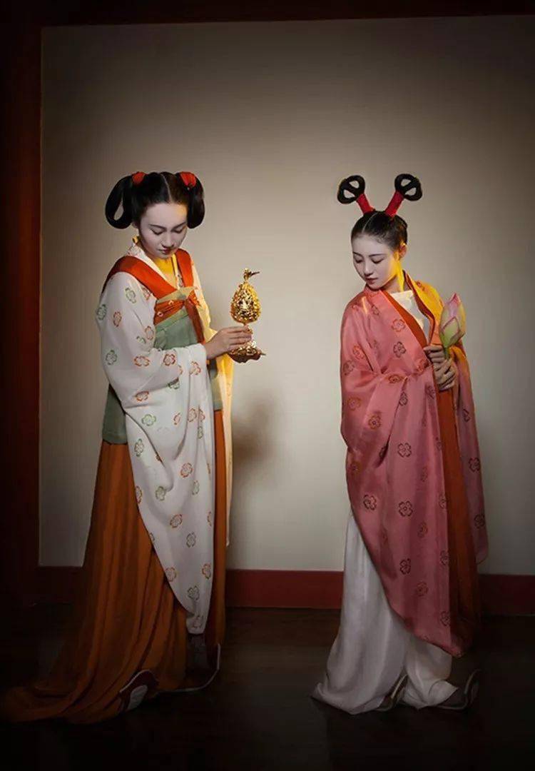 在诸羌胡族贵族统治下的北方,统治者还是喜欢穿红着绿,先是短衣加披风,到北魏时改为宽袍大袖,惟帽子另作一纱笼套上,名叫“漆纱笼冠”。至于普通老百姓,不论南北,都是一样,始终穿短衣。不过北方人穿上衣有翻领的,穿裤子有在膝下扎带子的。这种装束,直到唐代还通行于西北。特别是翻领上衣,几乎成了唐代长安妇女最时髦的服装式样。