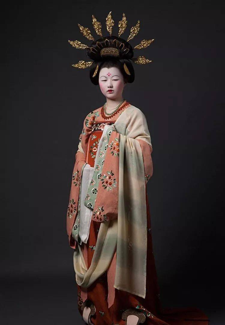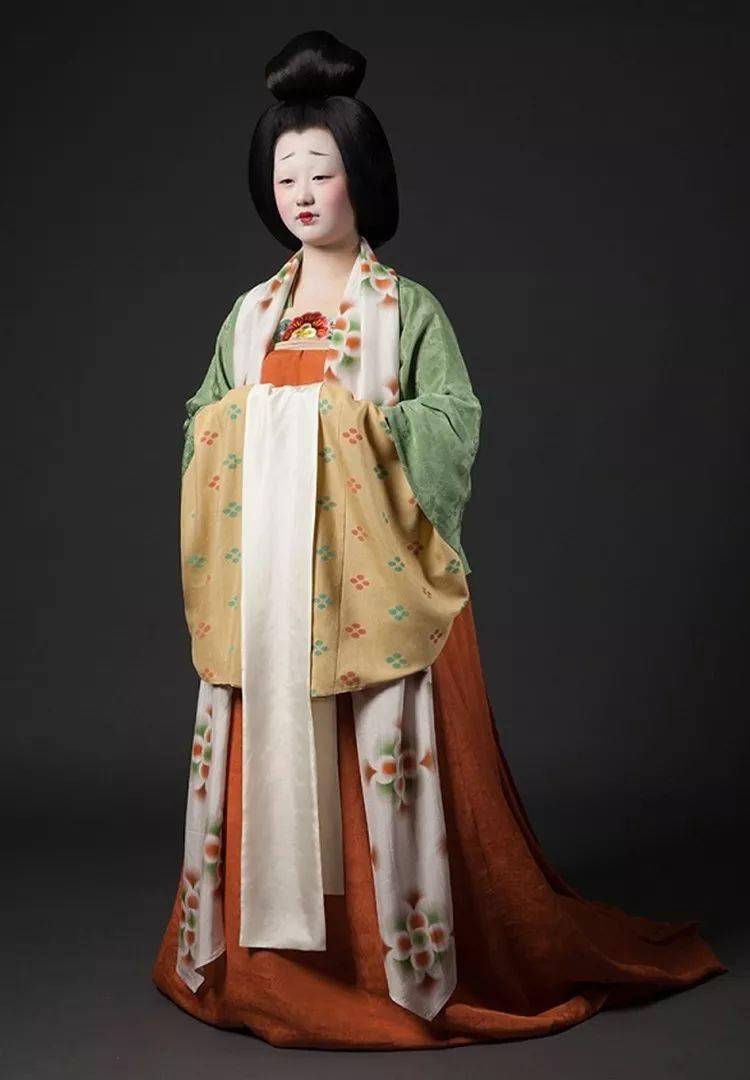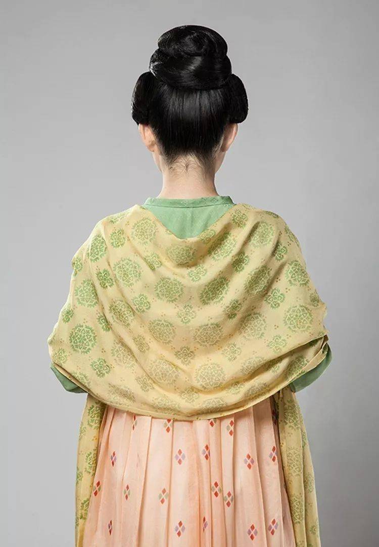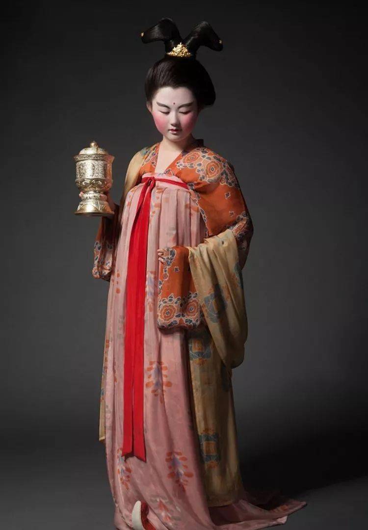 女子的衣裙早期瘦而长,裙系在胸上;发髻向上高耸,发间插些小梳子,多的到五六把;面部化妆多在眉心贴个星点,眉旁各画一弯月牙。这时,中原一带的妇女喜着西域装,穿翻领小袖上衣,条纹裤,软锦蛮靴;有些妇女还喜梳蛮鬟椎髻,嘴唇涂上乌膏,着吐蕃装束。这时期,流行一种半袖短外褂,叫做“半臂”,清代的马褂和背心,都是由它发展而来。