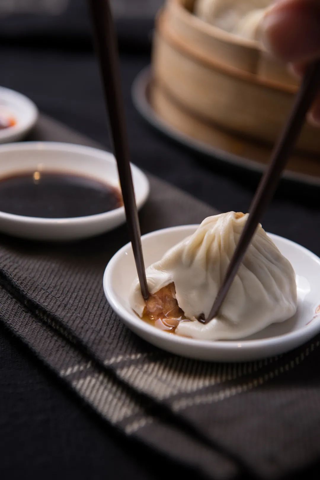 无锡人眼中,世上的小笼只分两种,本地小笼和其他小笼。皮冻化成的鲜美汤汁在大量糖分的作用下变得浓郁、黏腻,吃小笼馒头一定要先在皮上咬开小口,慢慢吸它的汤汁,以免心急烫伤唇舌。无锡小笼外皮未经发酵,极薄极糯,吃时合着紧实鲜甜的肉馅一起咬下,肉香充盈。好的小笼馒头,吃过之后是会粘嘴唇的。