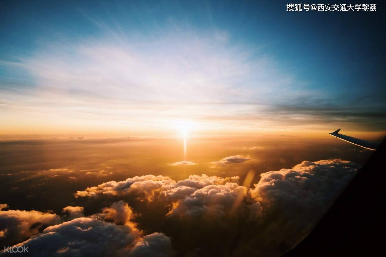 东方既白,黎明时太阳跃出地平线那一刻的高空天色。