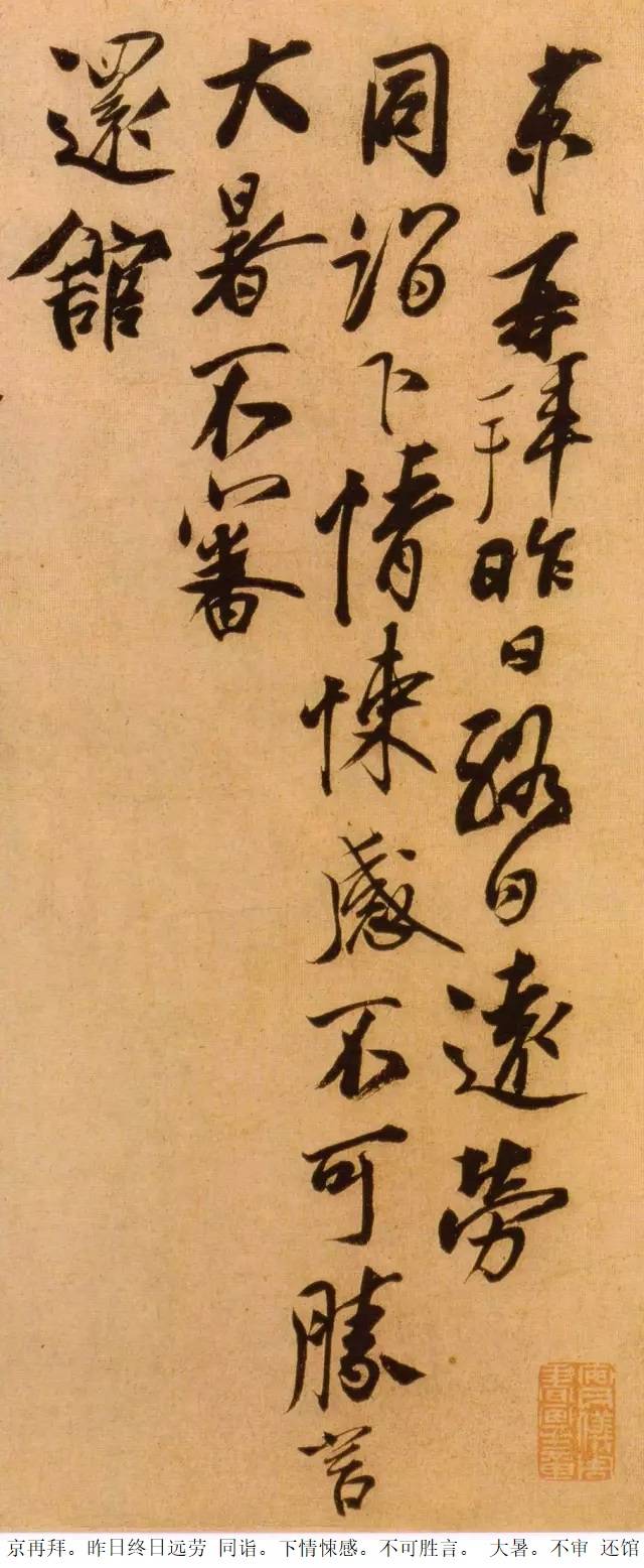 京再拜。昨日终日远劳 同诣。下情悚感。不可胜言。 大暑。不审 还馆动静如何。想 不失调护也。京缘热极。不 能自持。疲顿殊甚。未果前造坐次。悚怍。谨启代面叙。不宣。京再拜。 节夫亲契坐前。