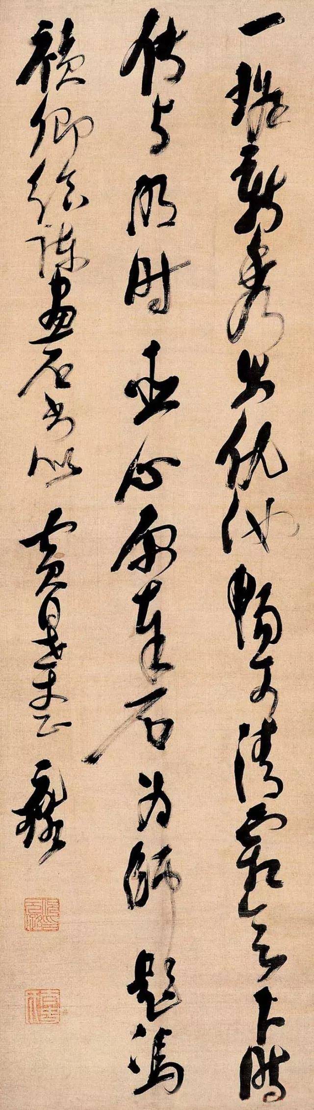 (1521年-1593年)明代著名文学家、书画家。与解缙、杨慎并称“明代三大才子”。徐渭的书法和明代早期书坛沉闷的气氛对比显得格外突出,他最擅长气势磅礴的狂草,但一般人很难看懂,用笔狼藉,他对自己的书法极为喜欢,自己认为“书法第一,诗第二,文第三,画第四”。