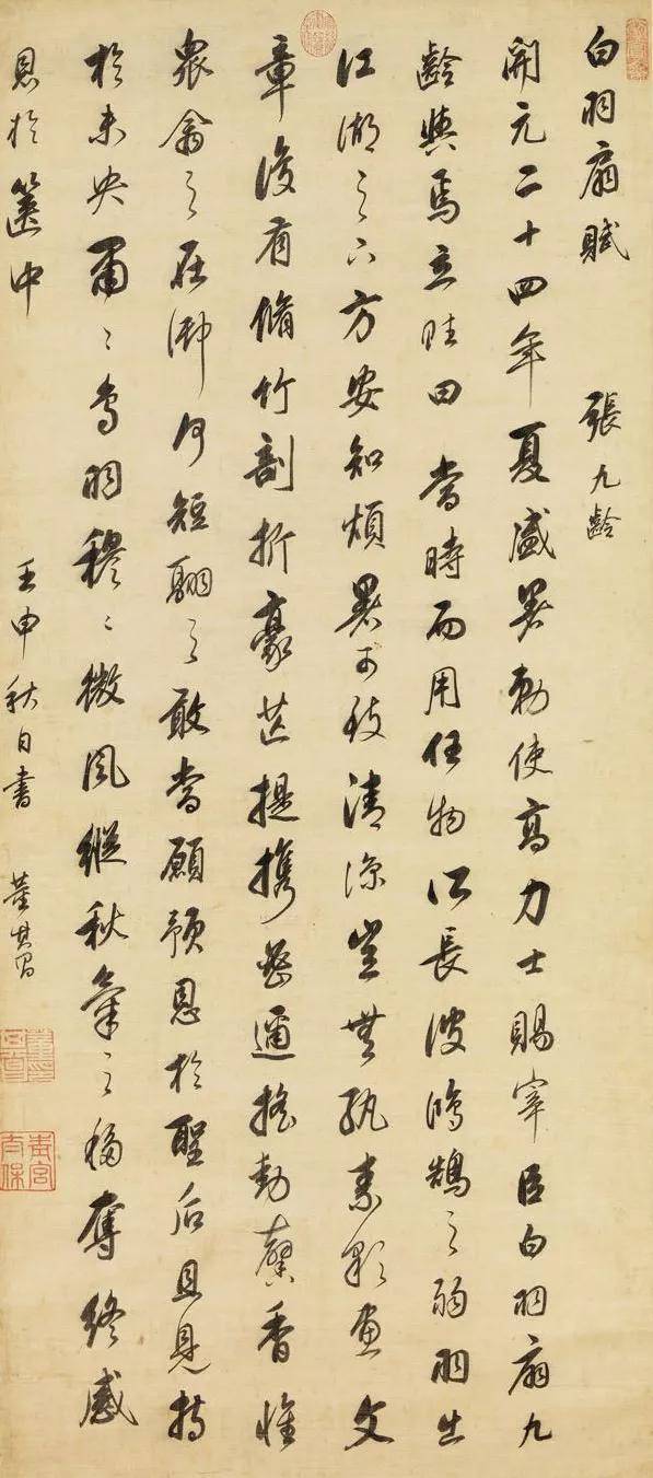 (1555年-1636年)书法出入晋唐,自成一格,能诗文。其存世作品有《岩居图》《明董其昌秋兴八景图册》《昼锦堂图》《白居易琵琶行》《草书诗册》《烟江叠嶂图跋》等。著有《画禅室随笔》《容台文集》《戏鸿堂帖》(刻帖)等。