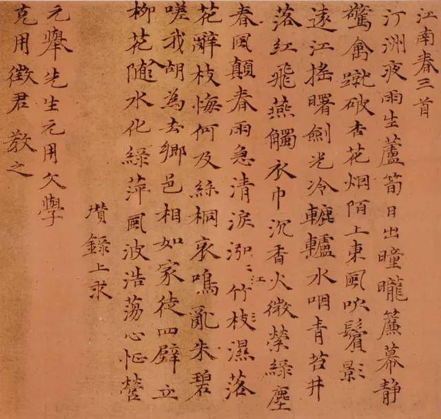 (1470年-1524年),字伯虎,后改字子畏,号六如居士、桃花庵主、鲁国唐生、逃禅仙吏等,南直隶苏州府吴县人,明代著名画家、书法家、诗人。唐寅书法源自赵孟頫一体,风格丰润灵活,俊逸秀拔,代表作《落花诗册》。