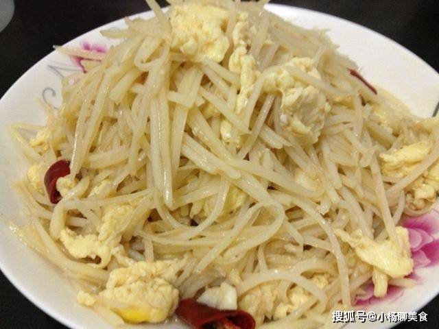 鸡蛋和土豆都属于健脑的食品,在鸡蛋中含有优质蛋白和脂肪,土豆则可以帮助身体补充维生素、矿物质、碳水化合物。而德国人推崇的“土豆加鸡蛋”就是这种生物价值很高的蛋白质食物,虽说这种吃法比较新鲜,但是还可以试试的,建议大家可以把土豆丝切的细一些,可以更好的炒熟。