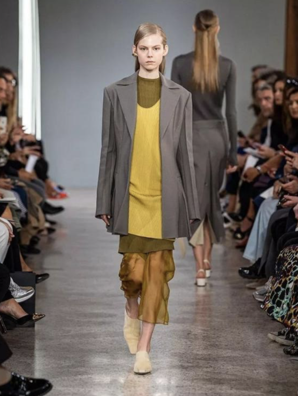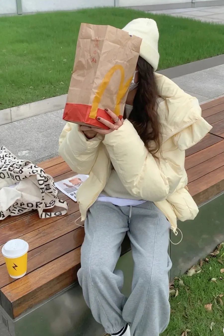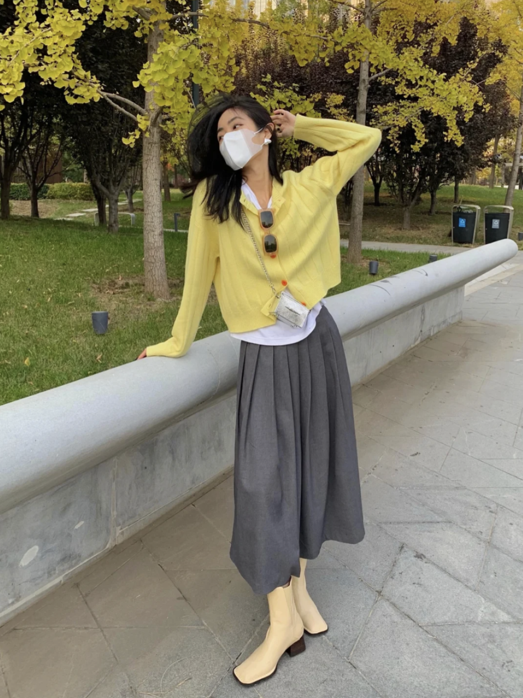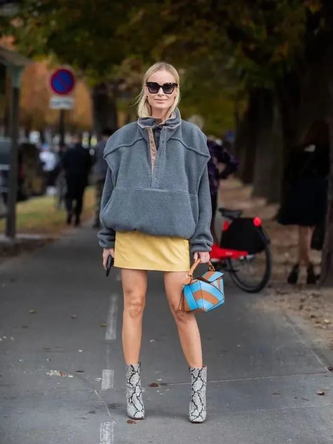 如果感觉亮黄色过于跳脱,也可以选择更柔和显气质的奶黄色搭配灰色。在阴郁寒冷的冬天,一抹温温柔的奶黄色绝对是独属于冬天的感官治愈。