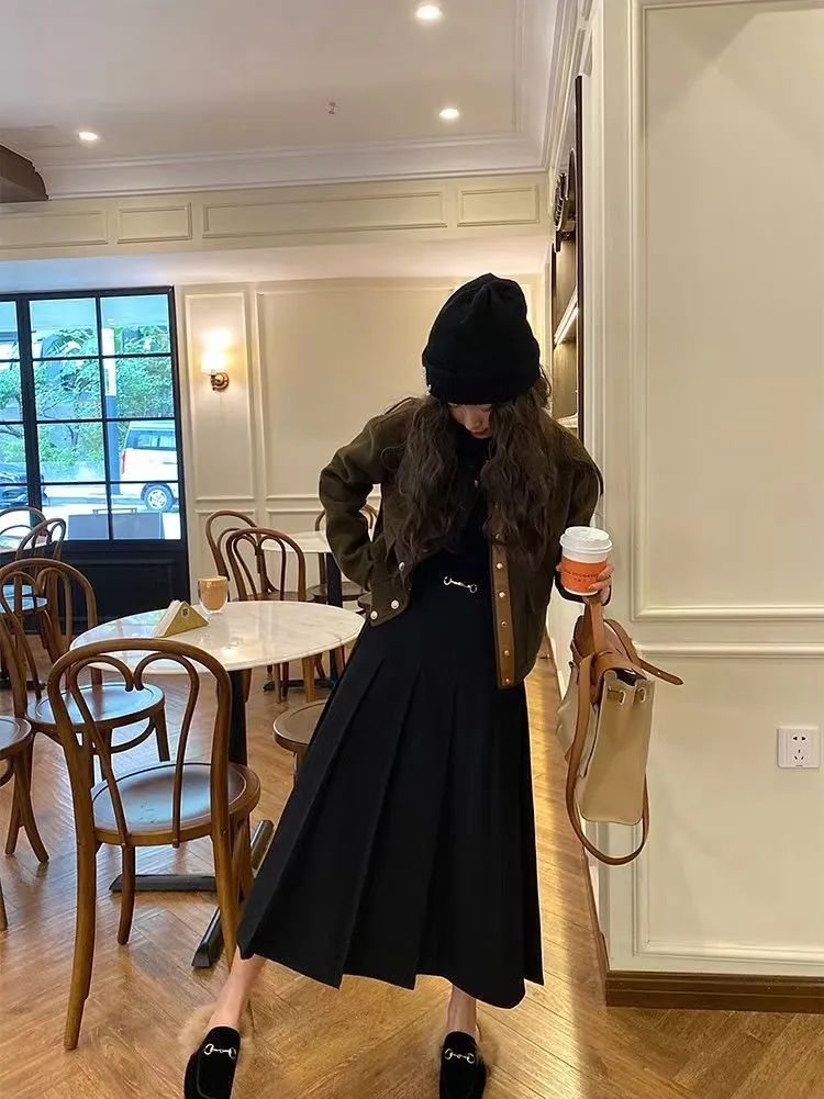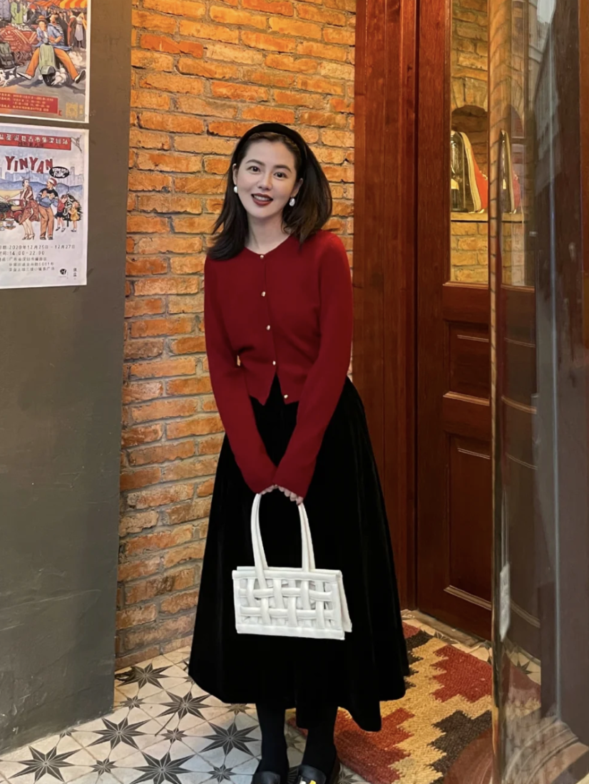 红色毛衣+黑色半裙是冬天里的绝配,尤其是到了年底节日不断的时刻。