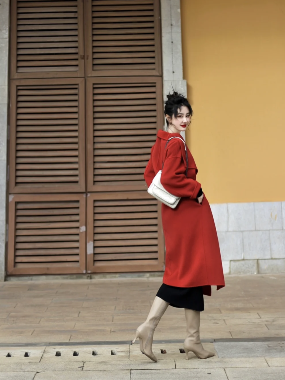 热巴每次的红色造型都相当惊艳,最近拍摄的这套红色大衣配黑色长靴当真完美诠释什么是御姐本御。
