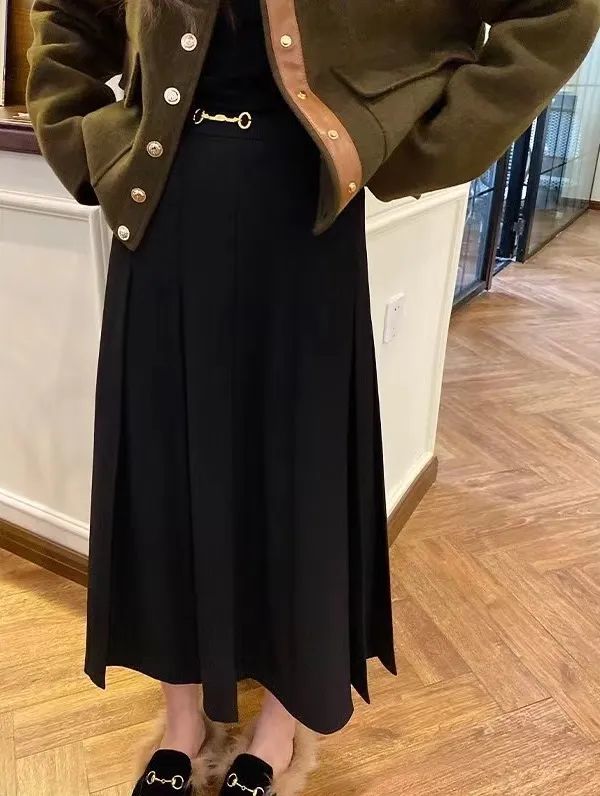 这件百褶半裙特别能遮肉肉,腰间还有精致的马衔扣设计,多了一分复古的调调,小个子女生穿上还能显高哦~
