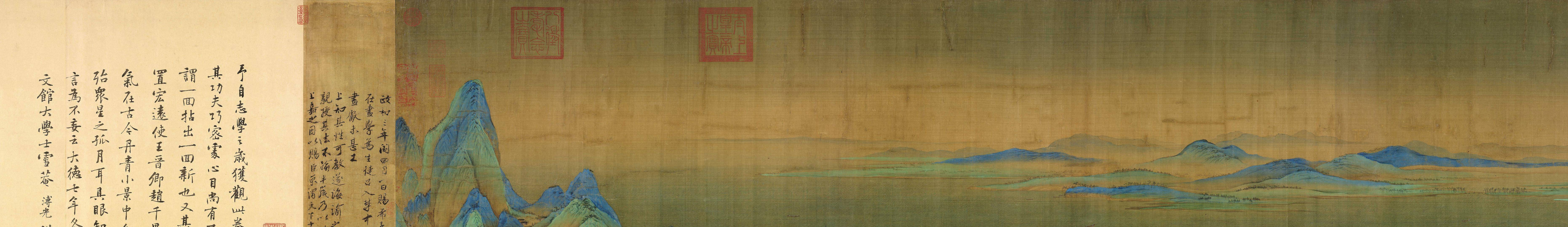 说完汝窑,再说说书画。宋徽宗还发展了宫廷绘画,广集画家,创造了宣和画院,培养了像王希孟、张择端、李唐等一批杰出的画家。