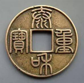 九叠篆“皇宋通宝”钱,九叠篆原是一种流行于宋代“国朝官印”字体,主要用于印章镌刻,其笔画折叠堆曲,均匀对称。每一个字的折叠多少,则视笔画的繁简确定,有五叠、六叠、七叠、八叠、九叠、十叠之分。之所以称为“九叠”,则是因“九是数之终,言其多也”,将九叠篆用于钱文,“皇宋通宝”钱为第一例也是最后一例。