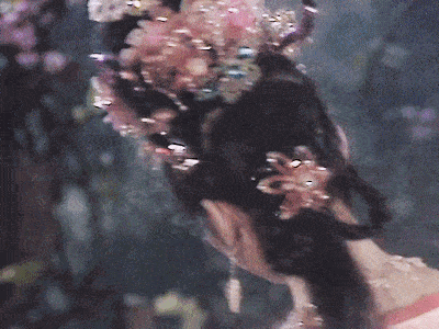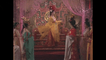 她在花园中翩翩起舞,试图勾引唐僧时。