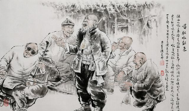 上个世纪,著名画家刘文西先生开创了“黄土画派”,旨在扎根黄土,深入人民群众之中,描绘他们生活的真善美。这一绘画风格阳刚豪放、雄浑大气,充满了积极向上的现实主义风格。不少画家认为,陈书升的这组“陕西八怪”颇有几分黄土画派的韵味,在用墨和色彩手法上更是直追画家刘文西。他们都是以歌颂老百姓的美好生活为己任,令绘画描绘的主体由高大上变得平凡、朴实,真正走入了每一个老百姓的生活,因此很多人说,这才是人民画家。