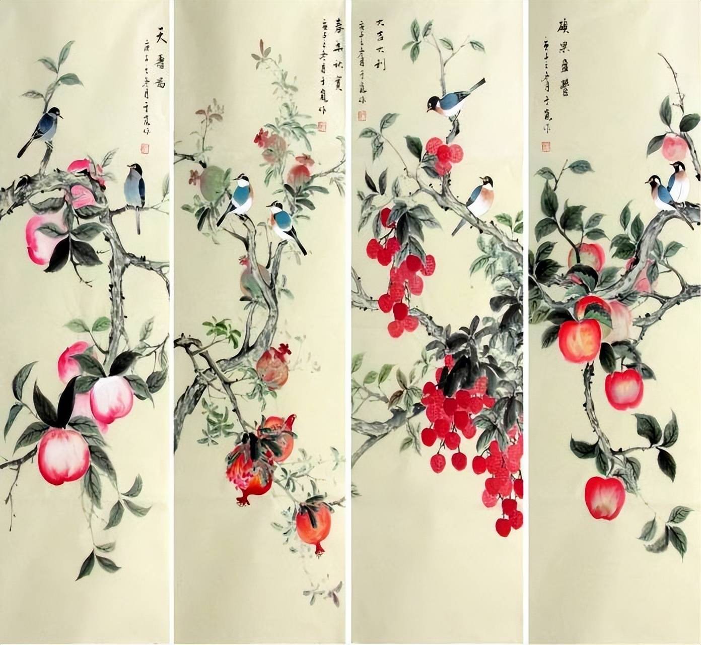 四条屏代表着中国的传统文化,传统精神,以及古老文化历史重要的体现形式之一。以四幅为一组的画,它是中国画中一种特有的表现形式,在特定而有限的空间中诠释万物个性神情的美感。