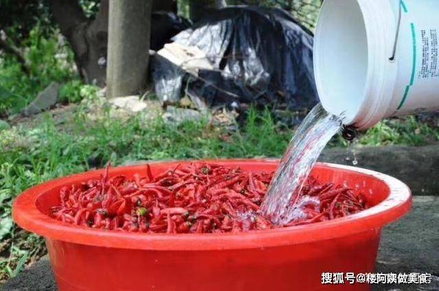 其实,剁辣椒做起来很容易,湖南人个个都会做,做剁辣椒要用新鲜的红辣椒,先将红辣椒放入清水里洗干净,将它表面的水分都晾干,一定不能有水分。沾了生水的辣椒很容易变质,不利于保存。