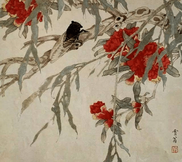 陈之佛《榴花鸣蝉》