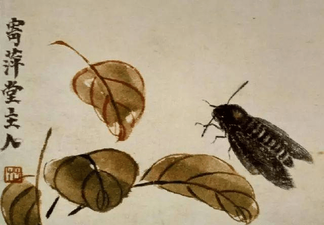 没骨画笔法和墨法:齐白石《落叶蛾子》
