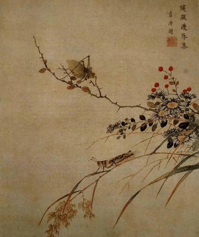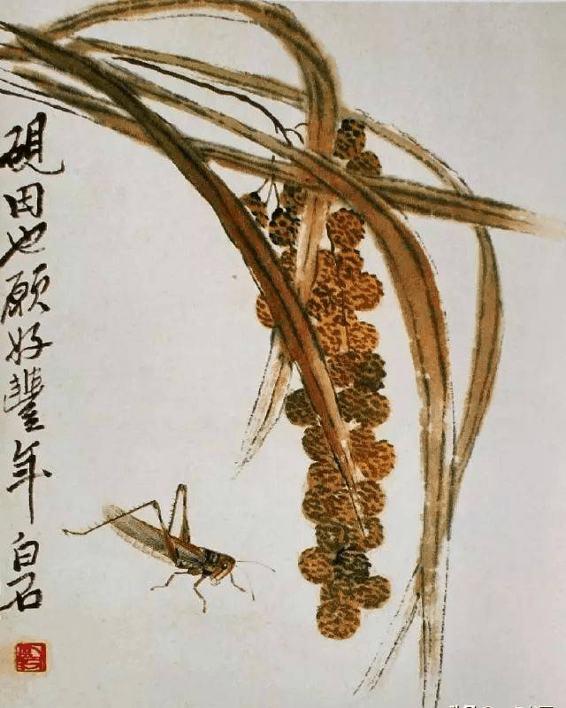 齐白石《谷穗蚂蚱》