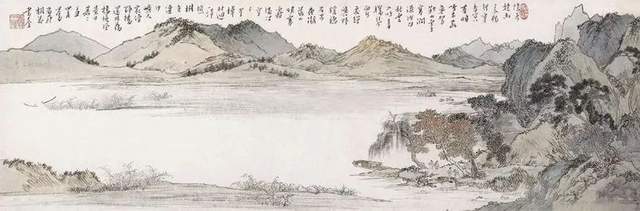 溥心畬得传统正脉,受马远、夏圭的影响较深。他在传统山水画法度严谨的基础上灵活变通,创造出新,开创自家风范。溥心畲的清朝皇室后裔的特殊身份使他悟到荣华富贵之后的平淡才是人生至境,因而他在画中营造的空灵超逸的境界令人叹服。