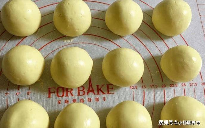 面团揉好后,将它们揉成一个小圆球,全部小圆球揉好,就往每个小圆球中放豆沙,豆沙作为南瓜饼的馅,吃起来更加美味。豆沙馅包好,将它揉成一个圆,为了做出来的南瓜饼更漂亮,颜值更高,可以借助工具,使它成一个模型。