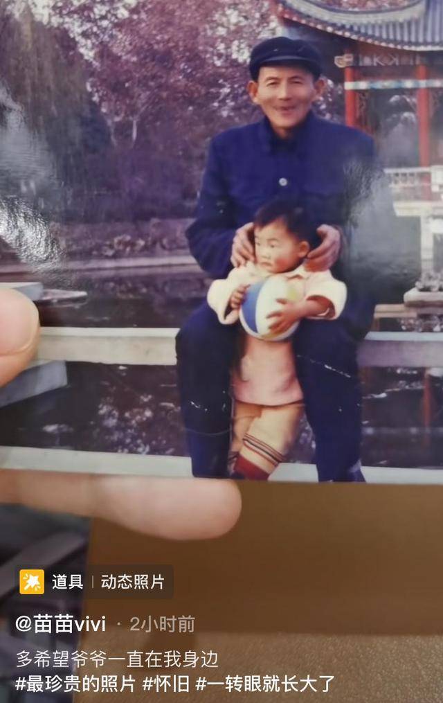 5月28日深夜,苗苗通过个人社交账号晒出老照片怀念自己的爷爷,配文:多希望爷爷一直在我身边。