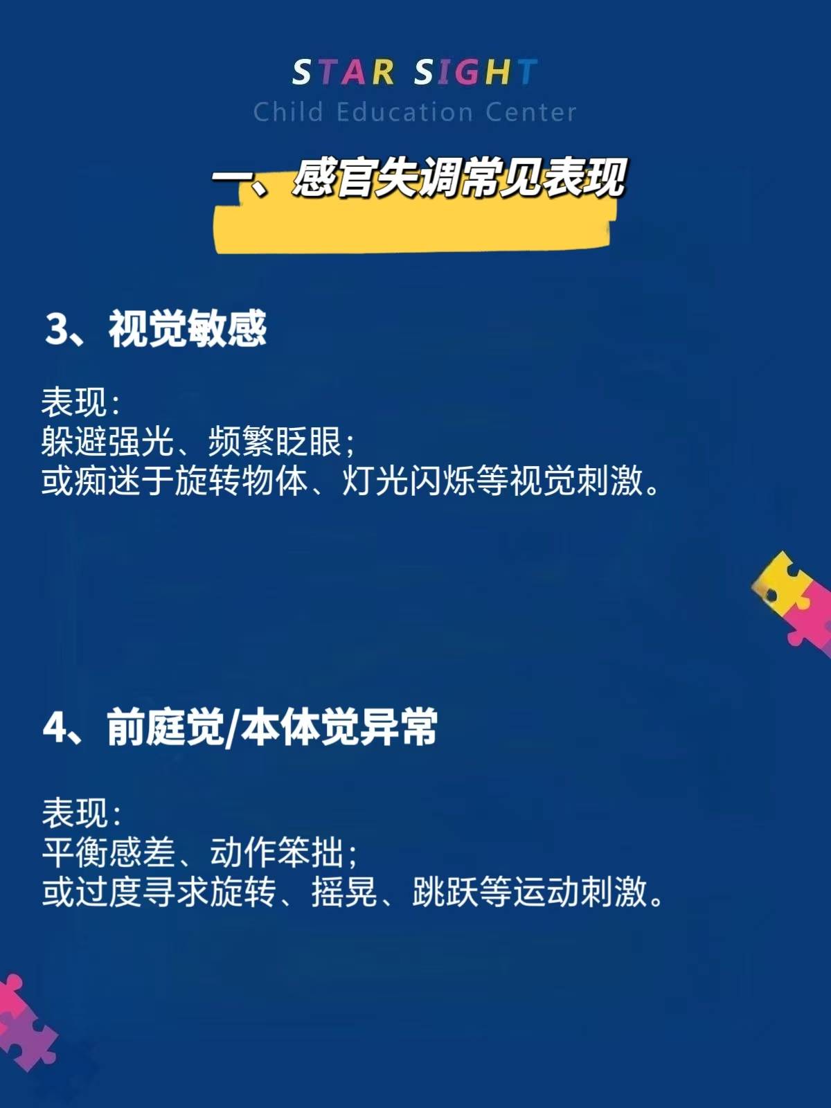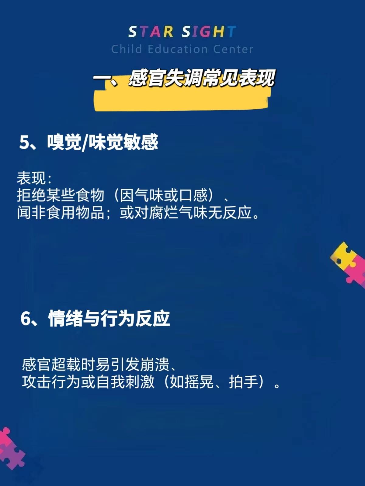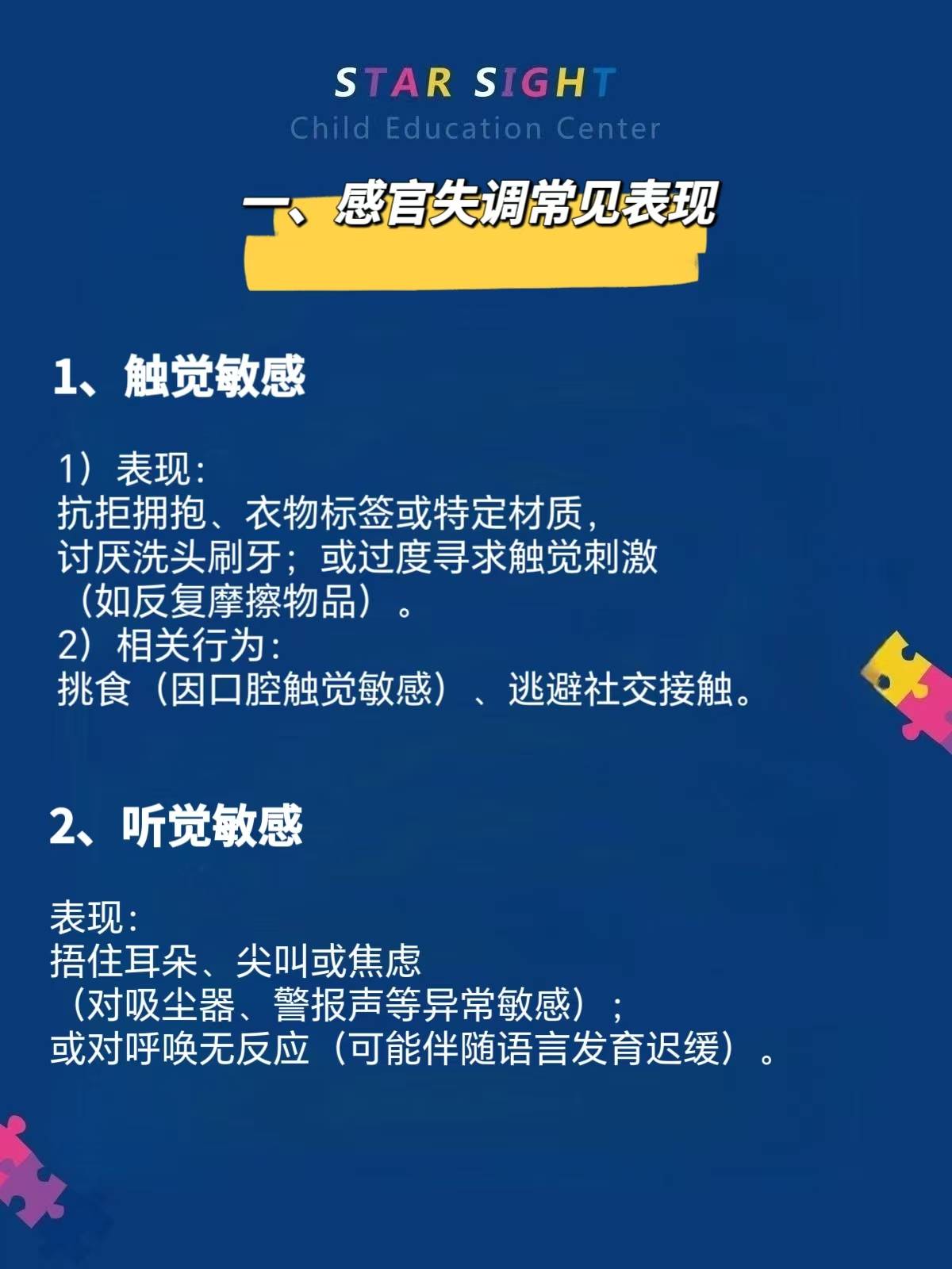 自闭症儿童的感官失调(感觉处理异常)是常见特征之一,可能表现为对感官刺激的过度敏感(如抗拒某些声音或触觉)或低敏感(如对疼痛反应迟钝),可能影响情绪、行为和生活质量。以下是其具体表现及干预策略的总结。